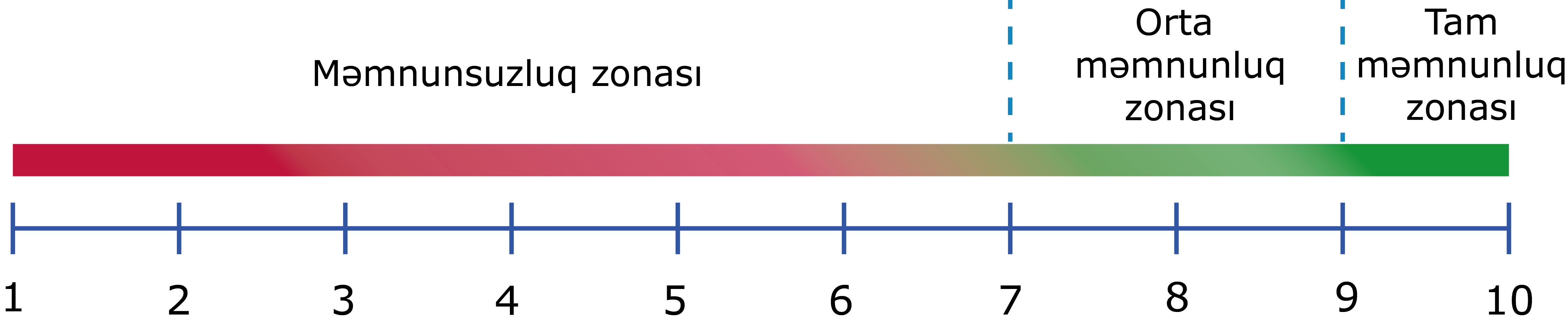 Müştəri məmnuniyyəti 10 ballıq qiymətləndirmə şkalası ilə ölçülür və bu zaman aşağıdakı araşdırma sualından istifadə olunur: